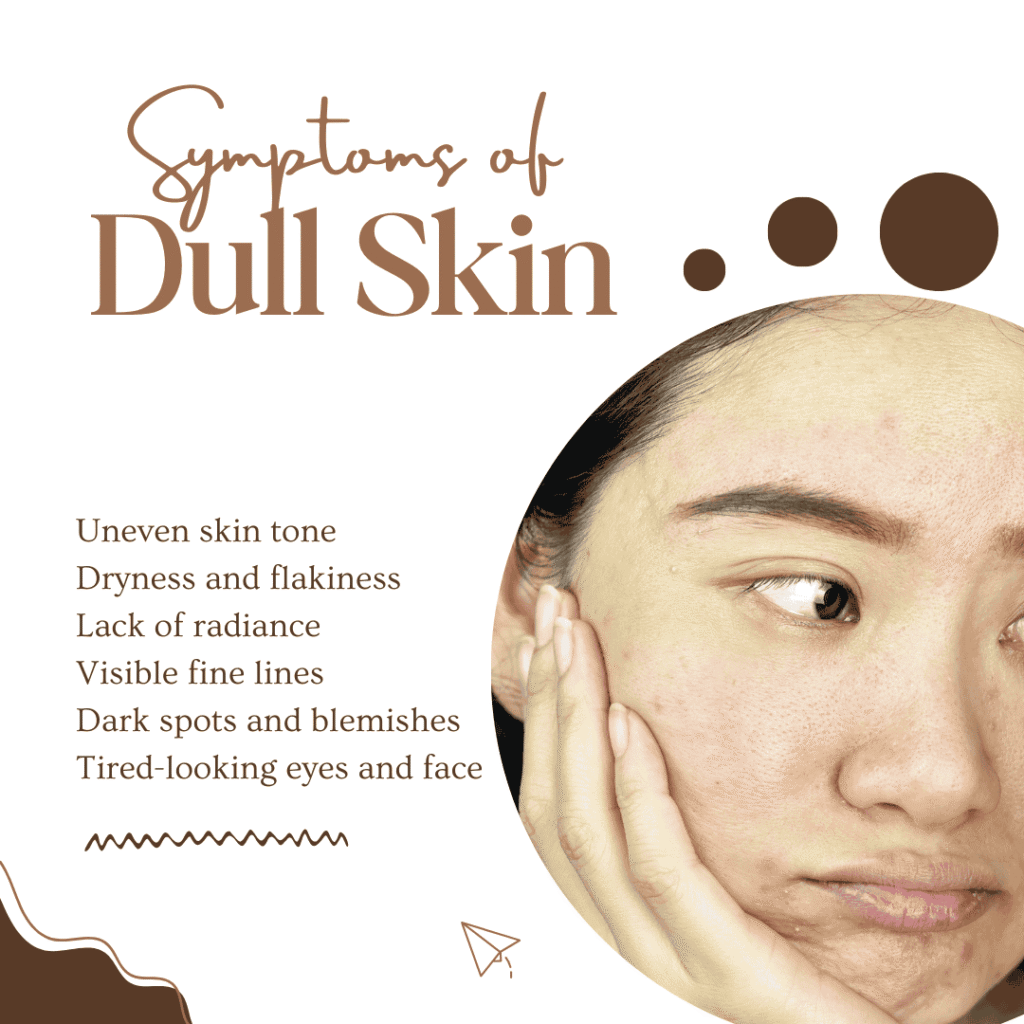 Dull skin is when your complexion looks tired, uneven, and lacks its natural glow. It often makes the face appear less vibrant and older than it is. Common symptoms include: