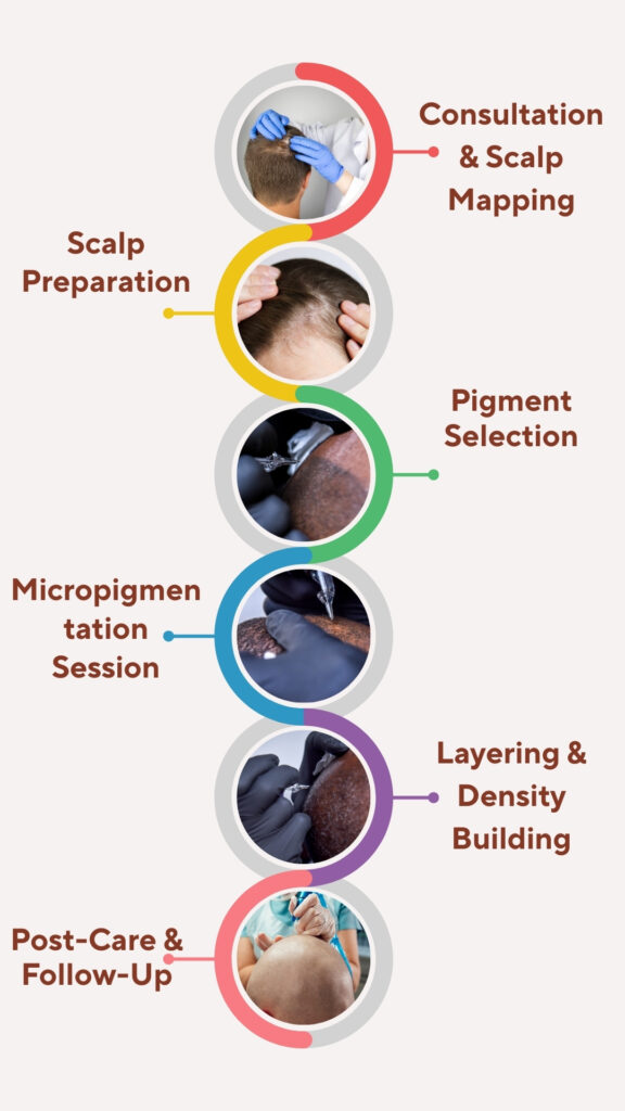 Using micro-needles, tiny pigment dots are strategically placed to mimic natural hair follicles with precision.